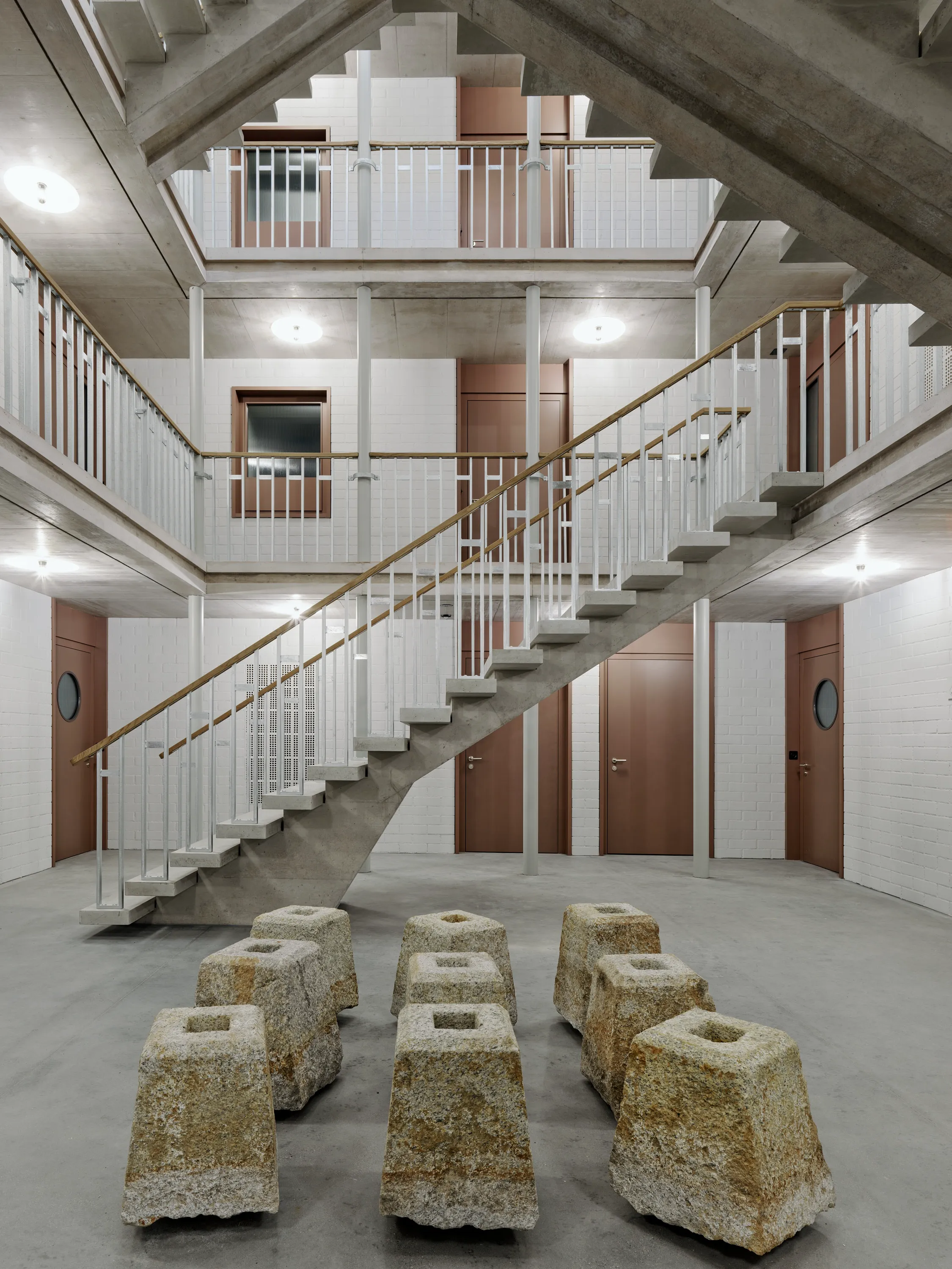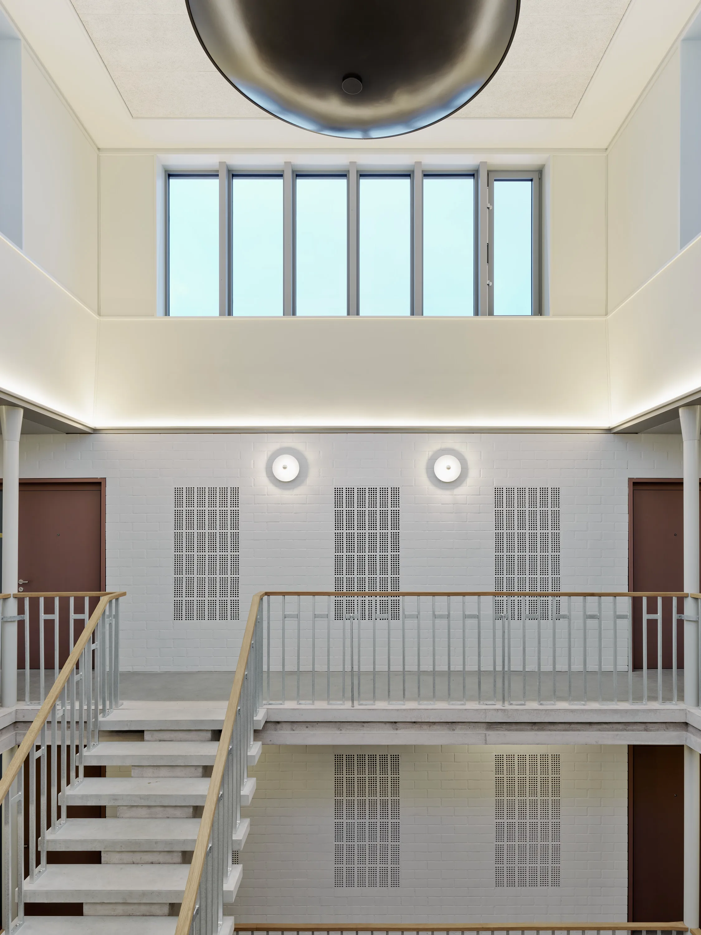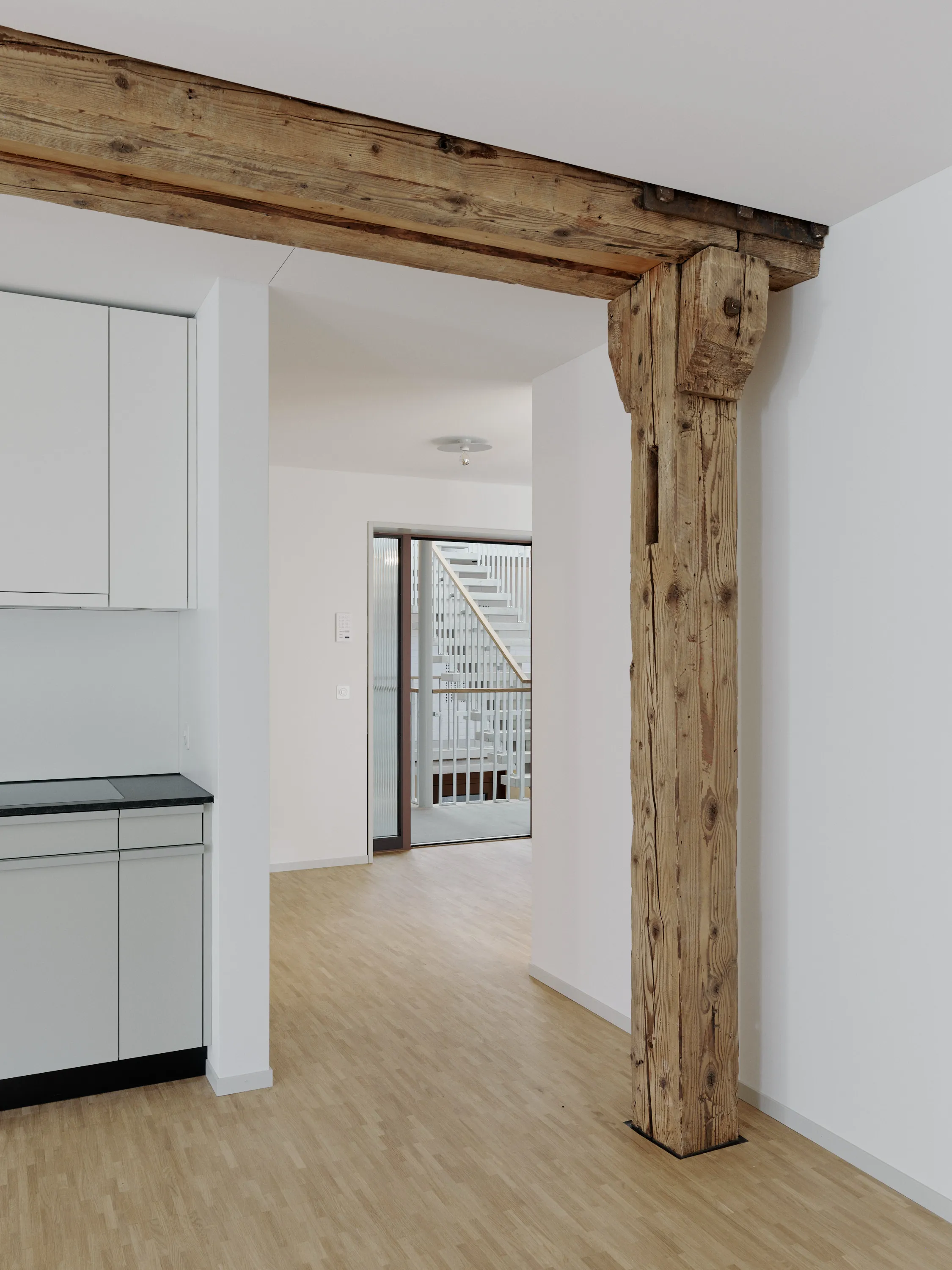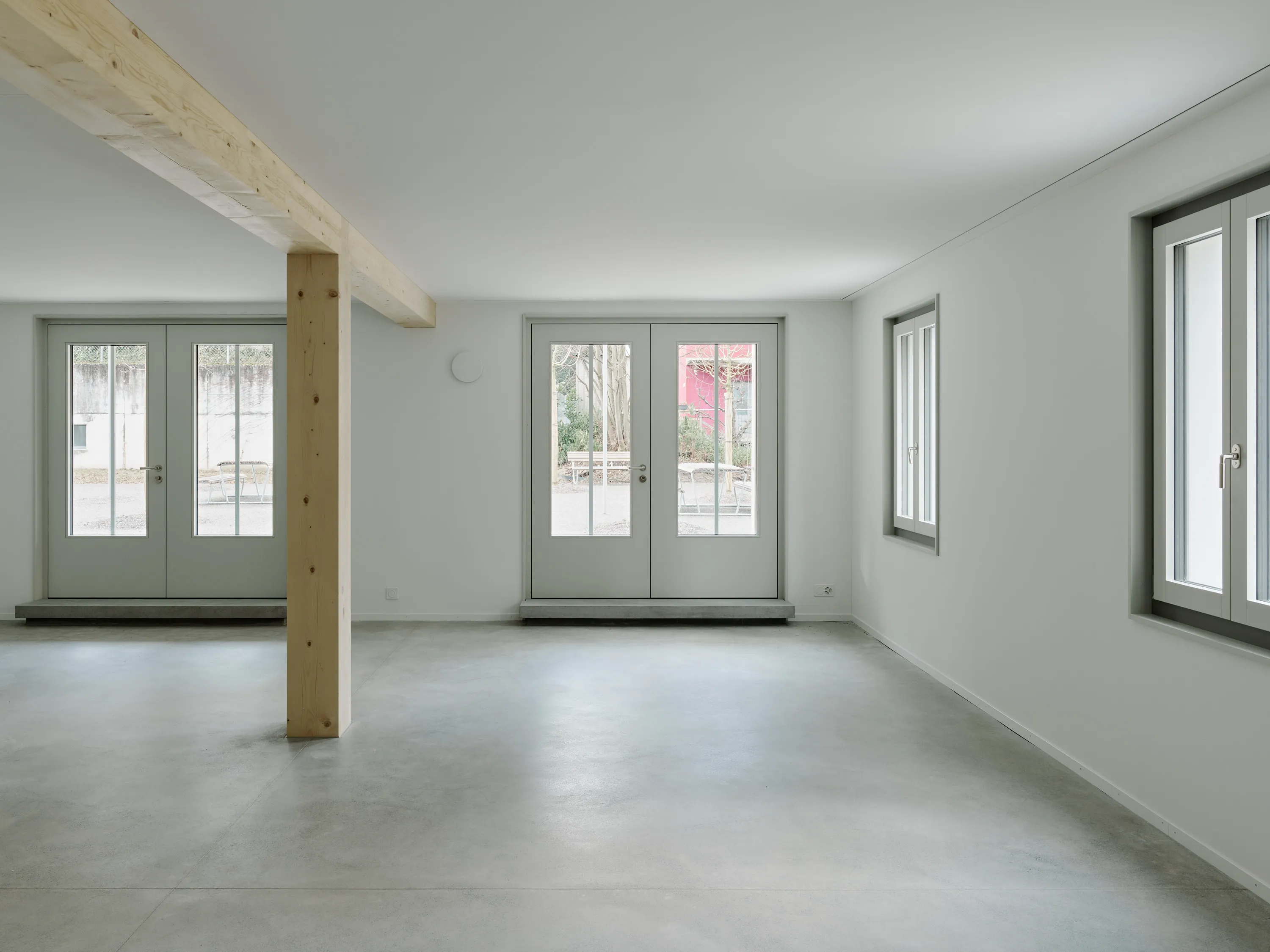 Durch gezielte, klar ablesbare Eingriffe entsteht ein spannungsvoller Dialog zwischen Bestand und Ergänzung. Neue Öffnungen, präzise eingesetzte Bauteile und eine zurückhaltende Materialisierung stärken die räumliche Qualität und führen die industrielle Substanz in eine neue, zeitgemässe Nutzung über, ohne ihren ursprünglichen Charakter zu verlieren.
