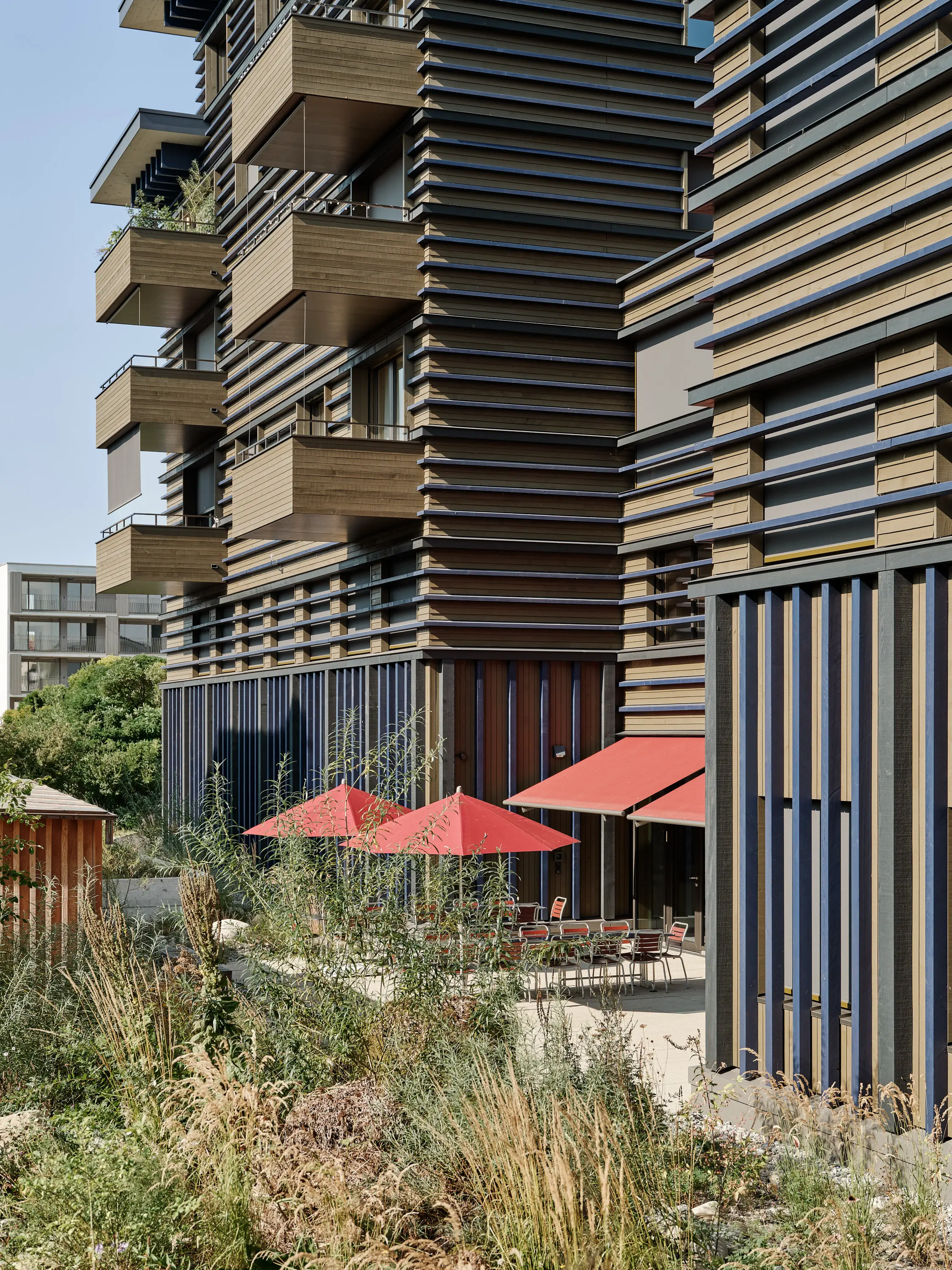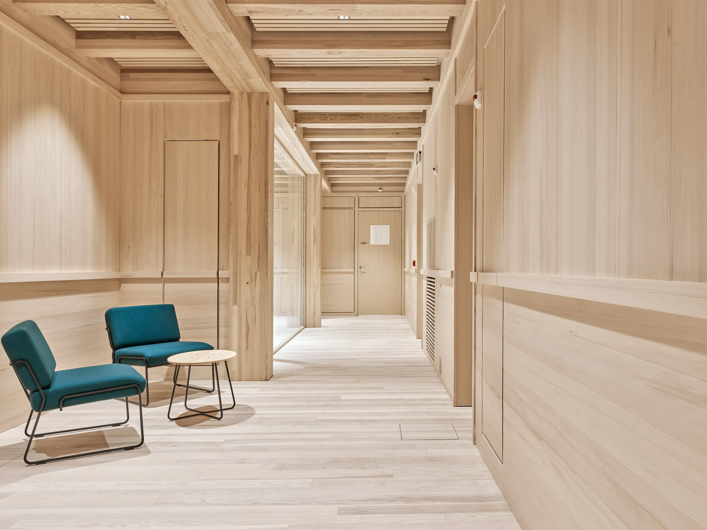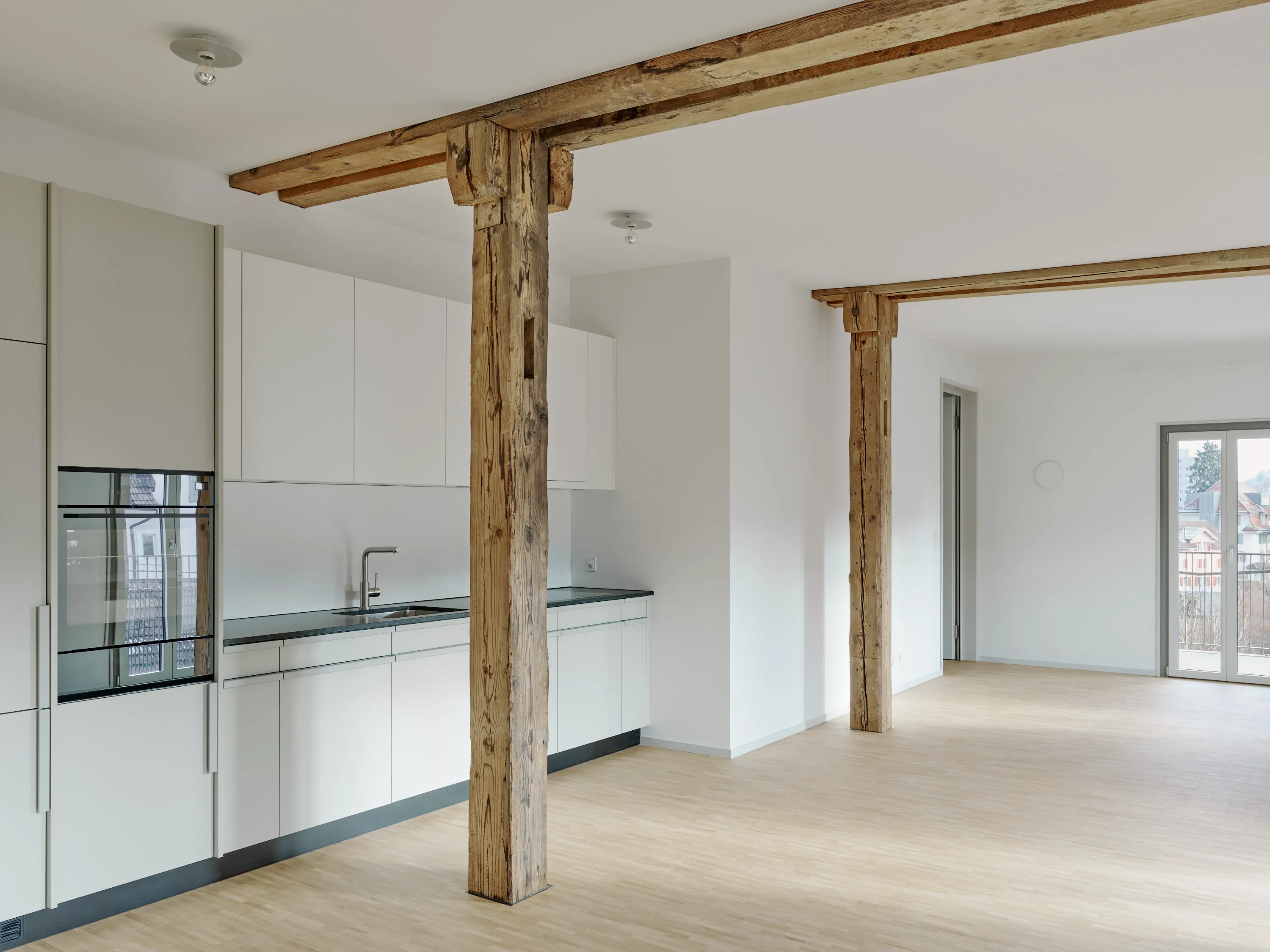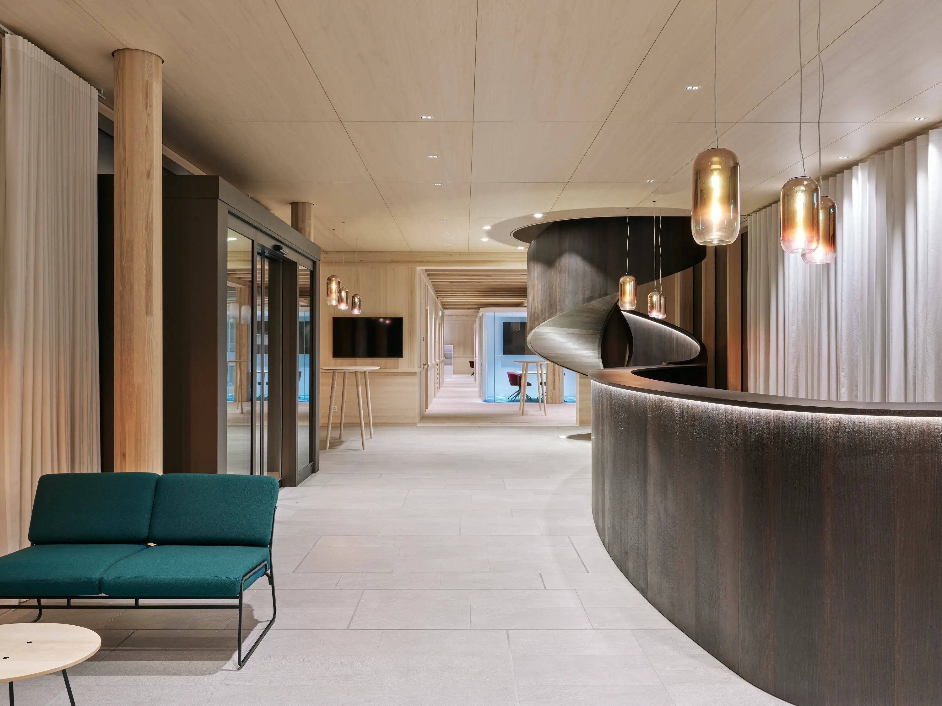 Die Innenräume zeigen Holz nicht als Oberfläche, sondern als tragendes System: sichtbare Struktur, warme Textur, ruhiges Licht. 2022 mit SNBS-Platin zertifiziert und Hauptsitz der PIRMIN JUNG Schweiz AG, demonstriert das Gebäude, wie nachhaltiger Holzbau im urbanen Kontext architektonisch überzeugt.