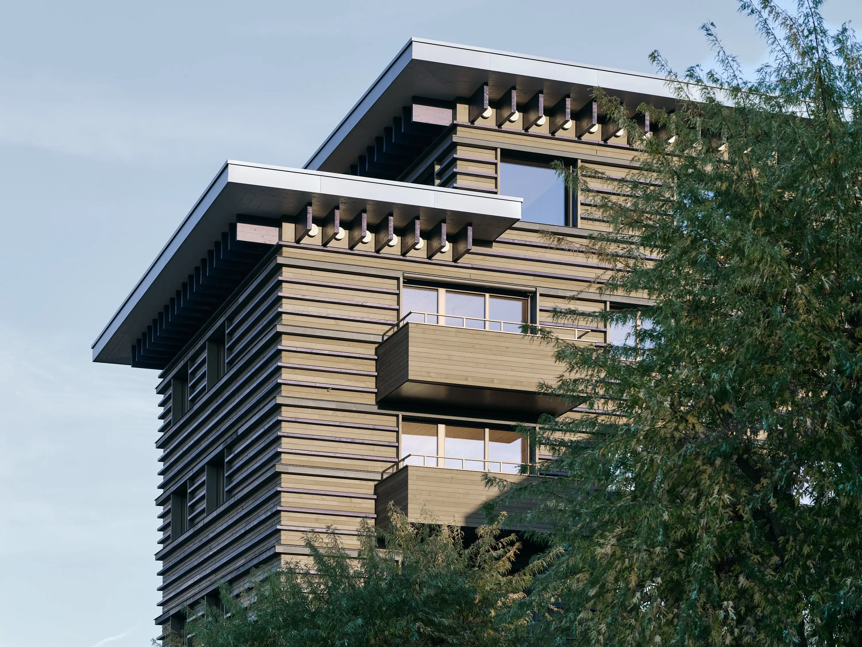 Das Haus des Holzes in Sursee ist ein sechsgeschossiges Büro- und Wohngebäude, das konsequent auf Schweizer Holz setzt. Marc Syfrig Architekten entwarfen ein Gebäude, das urbane Dichte mit den Prinzipien der Kreislaufwirtschaft verbindet – konstruktiv präzise, materialehrlich und auf Klimagerechtigkeit ausgerichtet.